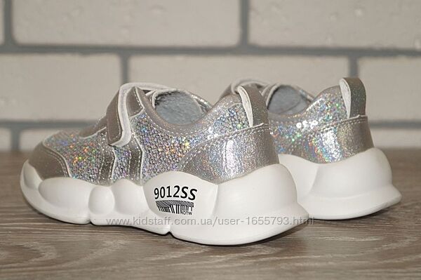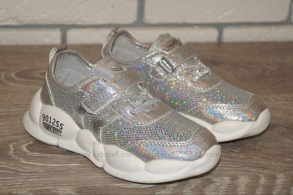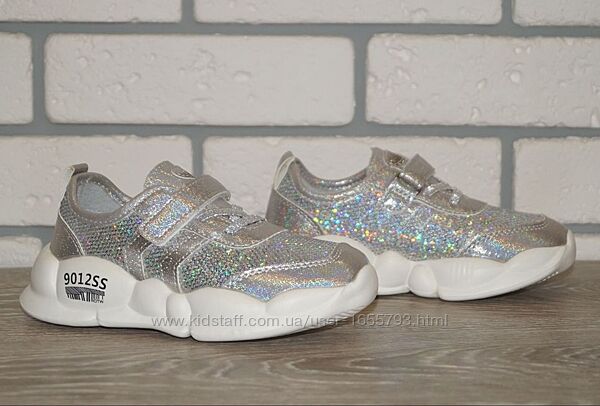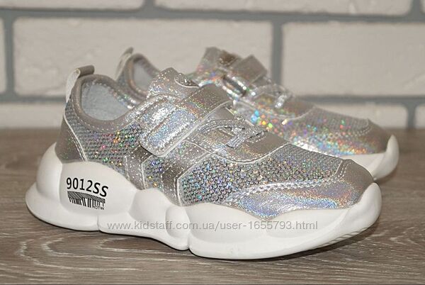Розкішні кросівки для дівчинки у сріблястому кольорі. Яскрава, оригінальна модель допоможе прикрасити/доповнити будь-який образ дитини.Кросівки пошиті в комбінації штучної шкіри та текстилю. Декоровані яскравими паєтками, які надійно пришиті.