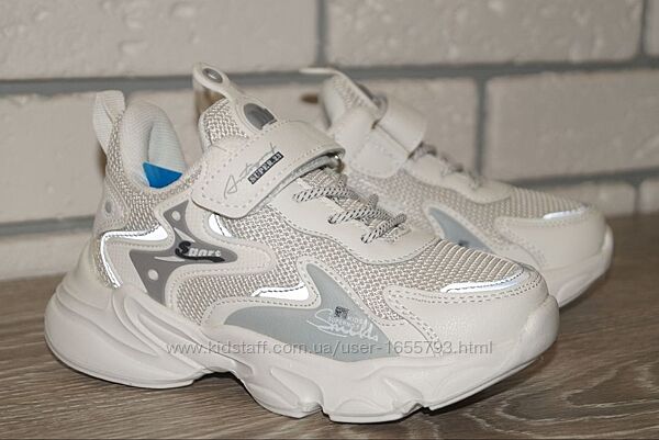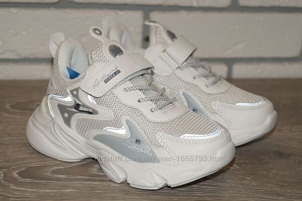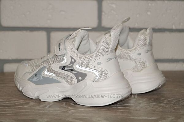 Стильні кросівки дитячі білого кольору. Якісні, легкі, комфортні - відмінний варіант для повсякденного носіння, а також відвідування уроків фізкультури, спортивних гуртків.Пошиті в комбінації штучної шкіри та текстилю. Мають спеціальну захисну вставку в частині носка та жорсткий задник. Всередині текстильна підкладка та устілка. Кросівки легко взуваються і фіксуються на ніжці за допомогою ремінця з липучкою та еластичних шнурків. Максимально легкі та зручні на ніжці. Підошва антиковзна.