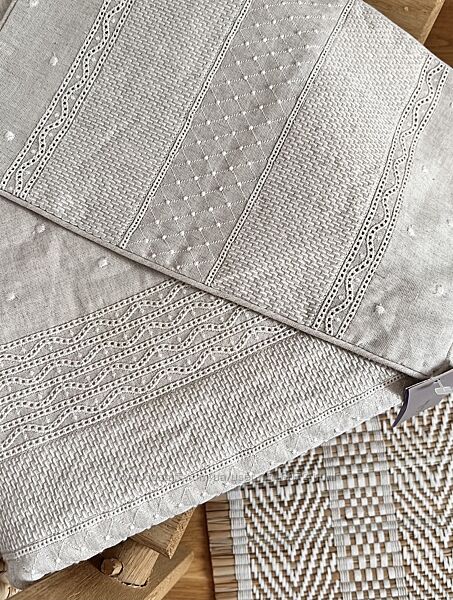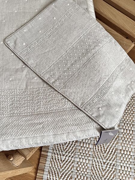В наявності , неймовірної красоти набір для новонароджених.Маленька лляна наволочка (20/30 см) та лляне одіяльце ( 55/85 см) вкрите ніжною мережкою та елементами вишивки.