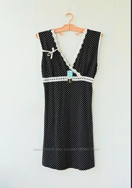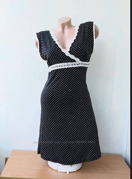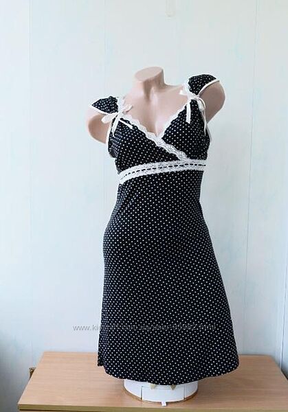 Нічна сорочка в горошок Essentials з ніжного віскозного трикотажу. На бирці розмір 14, маломірить на 12, можна й на 10. Тесть на м-л. Насорочці є атласні бантики, які можна розв´язати, а можна і просто