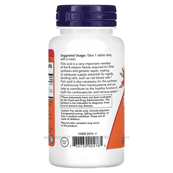 Подробное описание: NOW Foods фолієва кислота 800 мкг 250 таблеток фолат вітамін B-12 комплекс