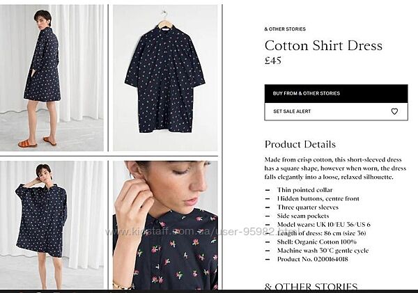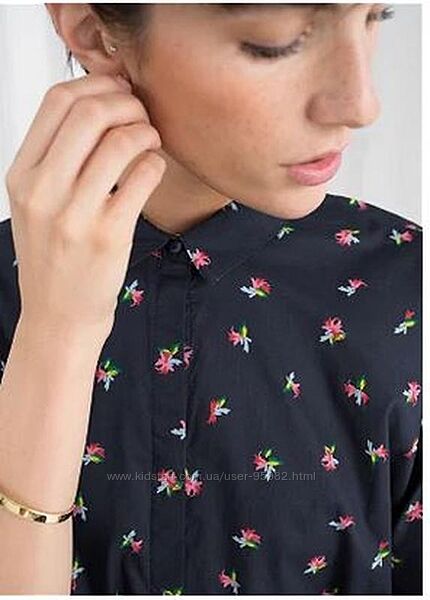 Дуже красиве плаття сорочка оверсайз & OTHER STORIES з ніжної, легкої бавовни. З боків є дві кишені. На бирці розмір 36 європейський. Сяде і на більший, орієнтуйтеся за замірами.НОГ — 74, поб — 73, довжина рукава від коміра — 56 см, довжина — 90 см. напівобхват манжета — 14, 5.