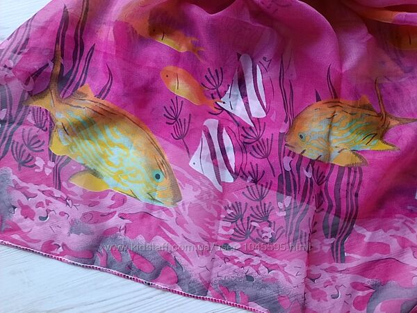 Розовое полупрозрачное парео принт рыбки