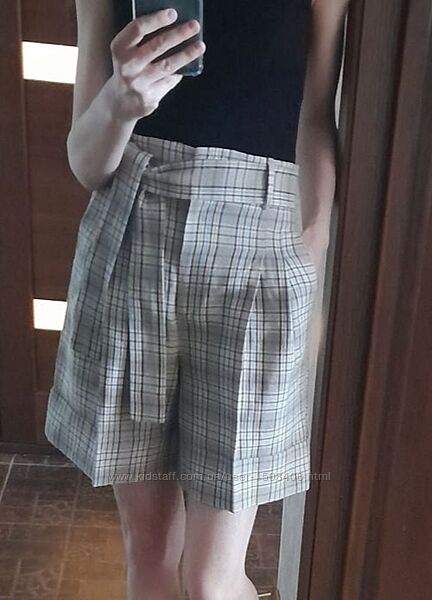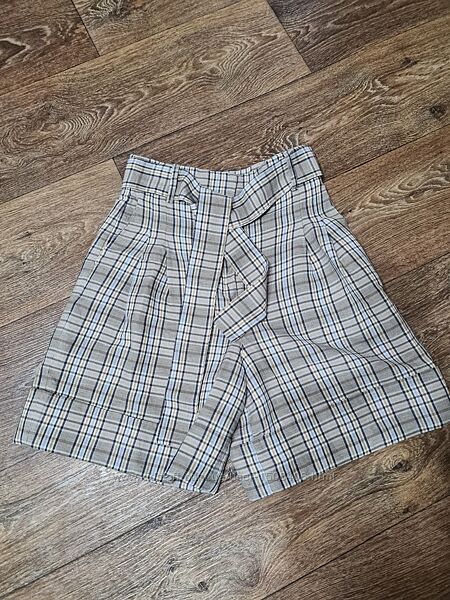 Трендова річ - бермуди зі щільного льону відомого іспанського бренду.Висока посадка, мають манжети та кармани.