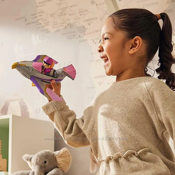 Машина Скай имеет крутую трансформацию - нажми на розовую кнопку, чтобы активировать ее крылья, открыть клюв и опустить лапы, с помощью которых автомобиль-сокол будет стоять самостоятельно или убирать помехи!Скай одет в свою розовую форму исследователя джунглей и шлем. Фигурка имеет размер около 5 см и вынимается из автомобиля.
