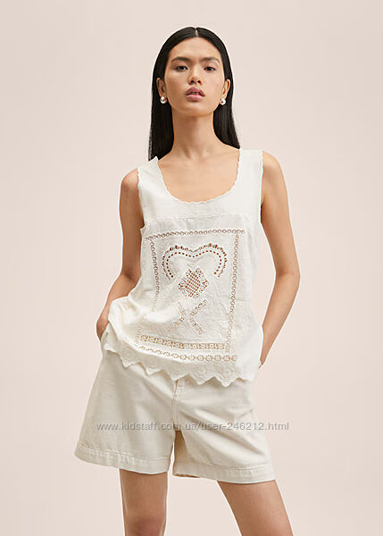 Подробное описание: Вишитий ажурний топ Mango зі льоном S/M