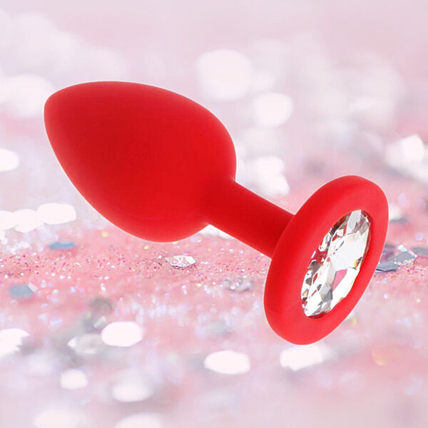 Силіконова анальна пробка червона з кристалом маленька розмір S