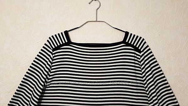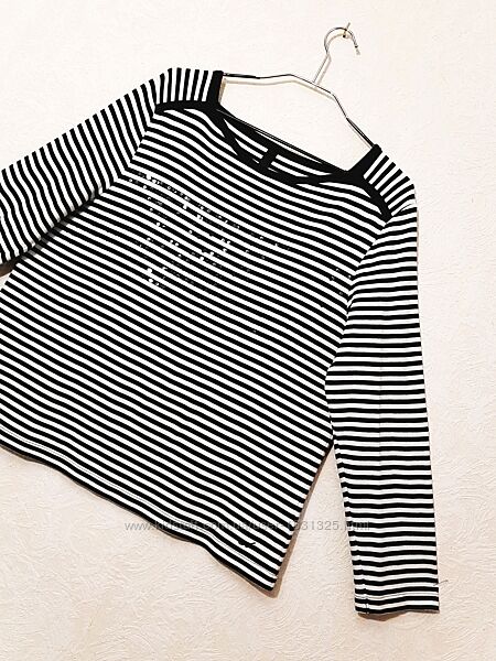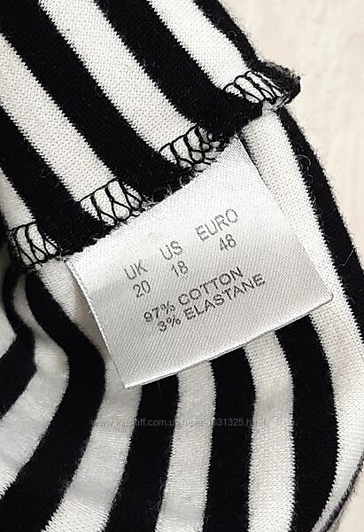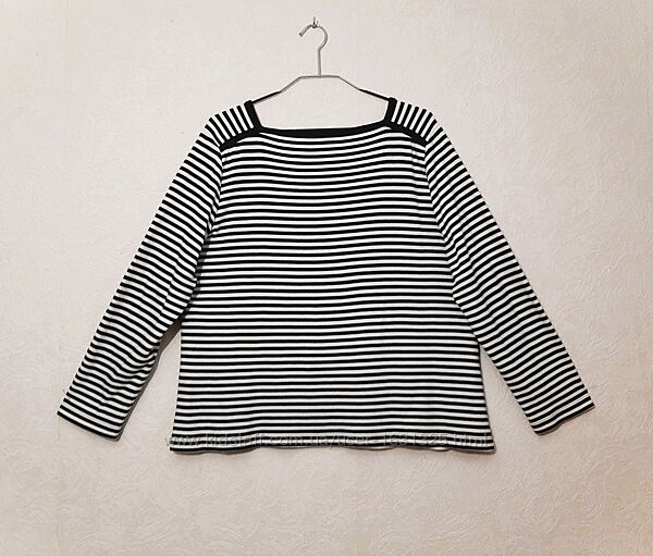 Футболка в смужку чорна/біла, довгий рукав, трикотажна бавовна на прохолодну погоду.Бренд на бирці неможливо розглянути. Маркування розміру EUR48. Сідає на розміри 52-54-56. Порівнюйте зі всіма своїми вимірами.