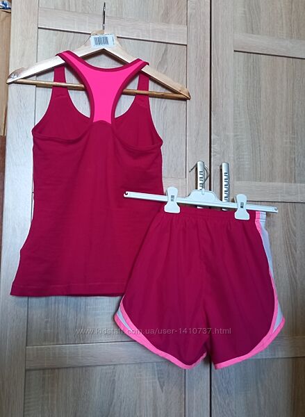 Продам классный комплект майку и шорты Nike. Майка имеет вшитый сетчатый топ с эластичной резинкой для поддержки груди.Ткань с технологией dri-fit. Dri-FIT - Технология обладающая свойствами регуляции влаги. Ткани с подобными свойствами выводят влагу или пот с тела на поверхность ткани, что способствует их испарению. В результате кожа остается сухой и обеспечивается максимальный комфорт для спортсмена. Шорты с полиэстра( ткань наподобии мягкой плащёвки) и шнуровкой на талии. Оригинал! Покупала в Гермпании. Размер XS и на неполную S. Замеры по вашей просьбе Состояние отличное