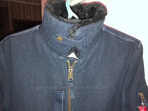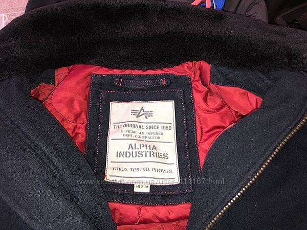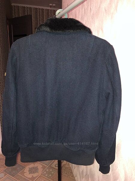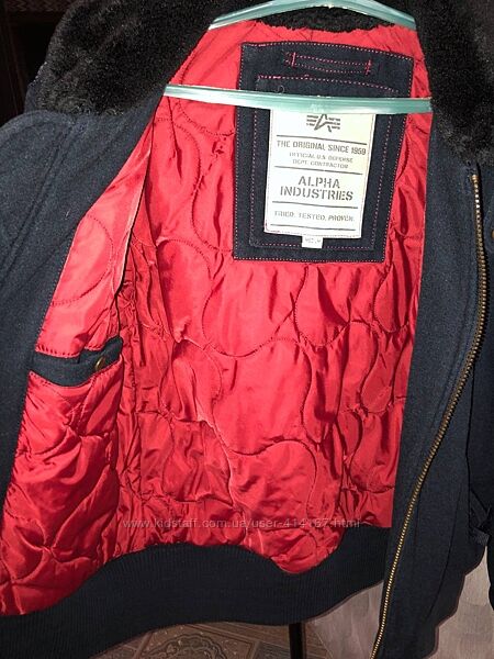 Бомбер харик полупальто от Alpha Industries с родной лентой, размер М, оригинал, в составе 60% шерсть, теплый с меховым воротом ворот регулируется, редкая отличная вещь, состояние отличное но есть не большая потеря цвета по манжетамплечи 49