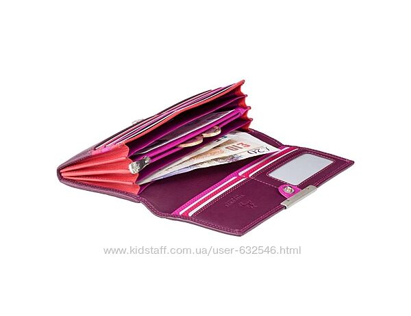 Захист від зчитування RFID; Гаманець йде в брендовій упаковці Країна виробник: Великобританія особливості: - 5 слотів під купюри - 9 відділень під кредитні картки (Візитки) - Наявність прозорого ID- віконця Всі жіночі гаманці: https://www.kidstaff.com.ua/user-anno-632546/secti...