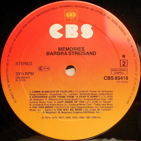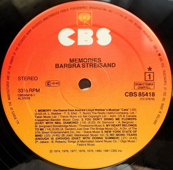 Подробное описание: Виниловая пластинка Barbra Streisand Memories