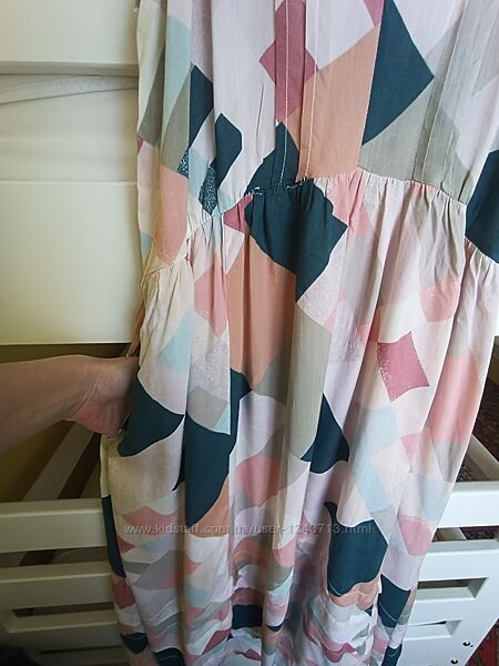 Дуже легкий, невагомий сарафан з тонкого модалу. Ідеальний для спеки. Не просвічує. Є кишеньки. Розмір М, але носила на С, підмишки непровисають, а зав´язками бретель можна відрегулювати виріз. Крій вільнийДовжина регульована, орієнтовно 117 см. Пог( завищена) +-45, пот 38 см + резинка