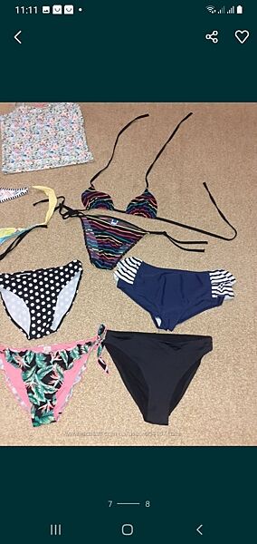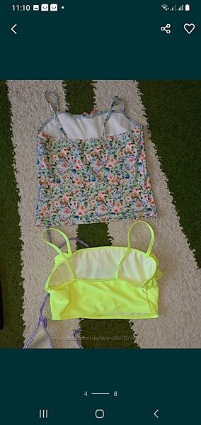 Верх морской next на 11-12 лет Верх танкини next на 14 лет, рост 164 см, полностью подшит Верх неоново желтый next на 13 лет подшит, яркий цвет на рост 158 см Плавки черные от 13 лет полностью подшиты Плавки в горошек черные от 13 лет, спереди подшиты Верх бандо с пальмами на чашку А, чашка держит форму , тонкий поролон Купальник не подшитый от 12 лет, чашки ´0´, ´А´., цена 60 грн Плавки синие на рост 164 см