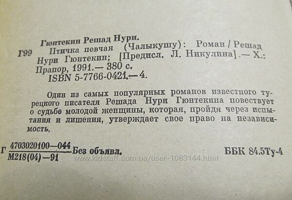 Подробное описание: Решад Нури Гюнкетин Книга Птичка певчая 1991 г.