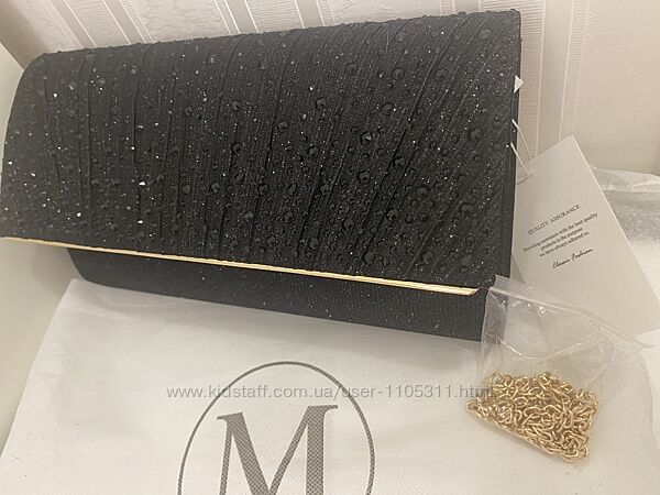 Шикарный клатч Muduo новый стильный!! Новый ненадеванный! в Украине один, привезен США Цена снижена! Шикарный подарок для любимой! Цену знижено! Продается новый черный клатч Muduo с этикеткой в упаковке! **Описание:** - Состояние: абсолютно новый - Цвет: черный - Материал: качественная плотная ткань с алмазным напылением - Размеры: 25 см x 15 см - Внутри: одно основное отделение, карман для мелочей - Фурнитура: металлическая, золотого цвета - В комплекте: съемный ремешок для ношения через плечо **Особенности:** - Стильный и элегантный дизайн - Идеально подходит как для повседневного использования, так и для вечерних выходов - Универсальный аксессуар, который дополнит любой образ Muduo — это китайский бренд, специализирующийся на производстве сумок и аксессуаров. Бренд известен своими стильными и доступными изделиями, которые сочетают в себе современный дизайн и функциональность. Muduo уделяет внимание качеству материалов и фурнитуры, стремясь предложить своим клиентам долговечные и привлекательные изделия. Бренд постоянно обновляет свои коллекции, следуя современным модным тенденциям. життя бентежне, а твоя краса постIйна! цIну знижено! Стильными в сезон 2025 2026 будут и клатчи. Стилист рекомендует обратить внимание на клатчи в форме конверта, классические модели портативного клатча — структурированные, мягкие, в стиле ретро и на цепочке. Такой вариант сумки, по словам стилистки, спокойно можно использовать, как в повседневных, так и вечерних образах.