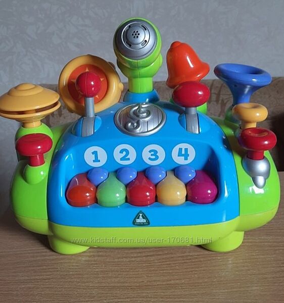 Игрушка полностью рабочая. Мелодии приятные.Есть пианино, труба, ударные,, барабаны. Микрофон рабочий.