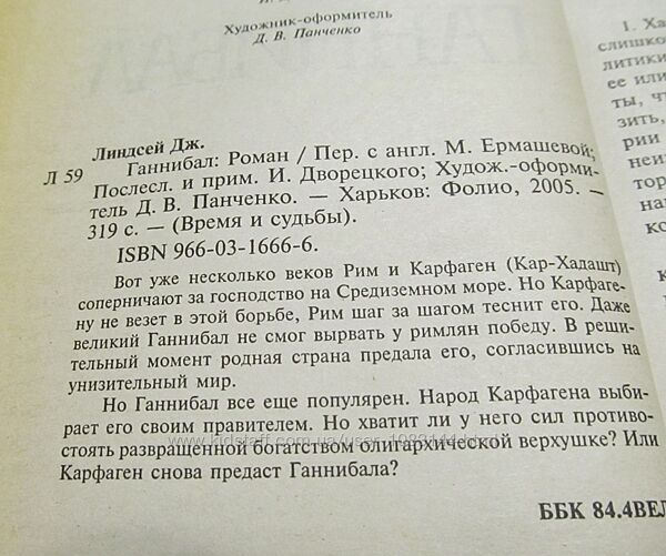 Подробное описание: Линдсей Джек роман Ганнибал Время и судьбы 2005 г