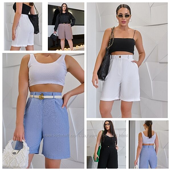 Подробное описание: Жіночі лляні шорти-бермуди вільного крою від 42 до 52 розміру