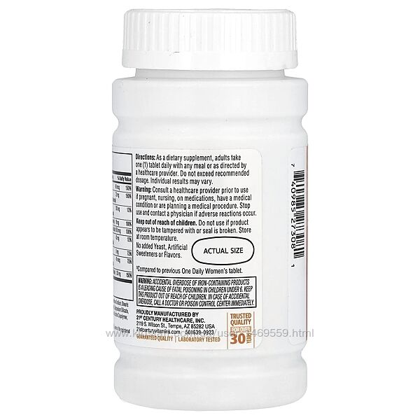 Подробное описание: 21st Century One Daily для жінок 100 таблеток мультівітамінна мультімінерал