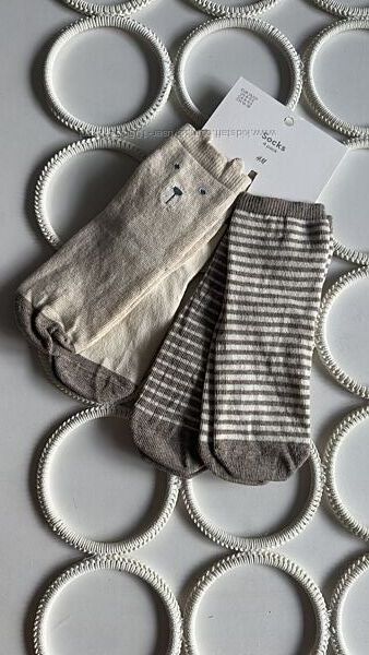 Шкарпетки від H&M для малюків-.унісекс тонкої в´язки з м´якої суміші бавовни з гумкою у верхній частині , колір - коричневий і беж , з мордочками ведмедиків .РОЗМІР 16-18 , 19-21 , 22-24 , 25-27.
