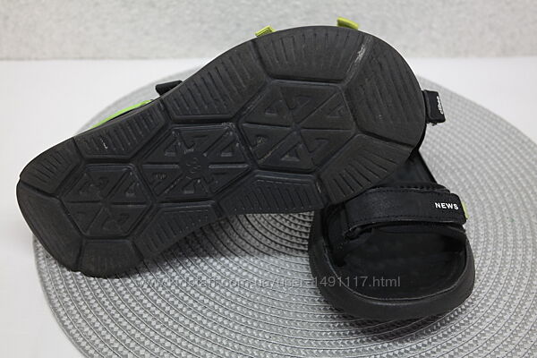 б/у босоніжки в чудовому стані, для хлопчика, чорні з салатовим. Липучки гарно тримають. Носили 1 літо. Не тяжкі, підошва частково гнеться. На 2 липучках. На фото конкретна пара 36розміру, що продається.36розмір устілка 22,7см в середині взуття повністю.
