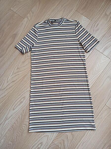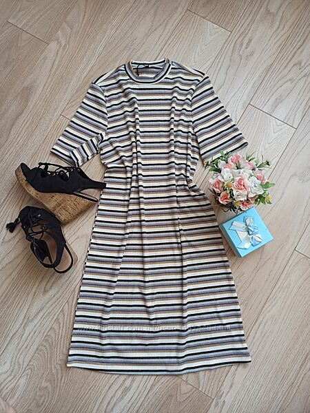 424. Платье новое, с биркой, без нюансов. Ткань как тонкий трикотаж, полоски с люрексом. Точный состав не указан. Ткань немного колет, из-за люрекса.Плечи 36 см