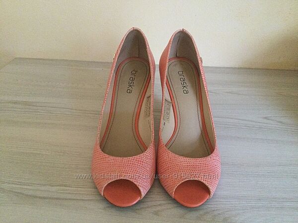 Шкіряні туфлі бренду Braska з відкритим носом.Розмір 39, висота підбора - 10 см, довжина устілки 25 см.