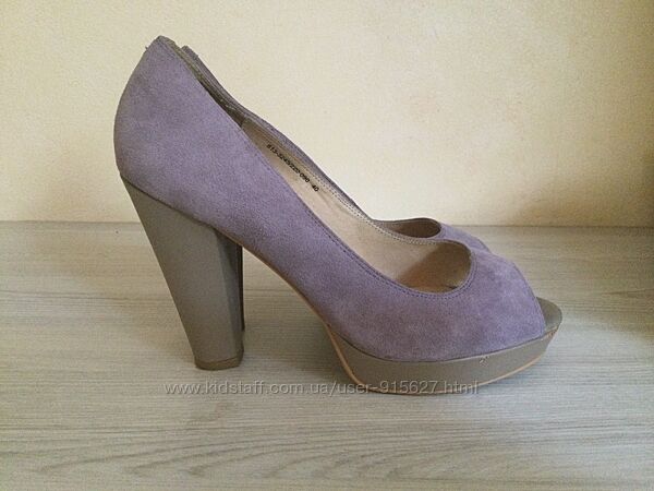 Замшеві туфлі з відкритим носом на платформі бренду Braska.Розмір 40, висота підбора - 11 см, висота платформи – 2 см, довжина устілки 25,5 см.