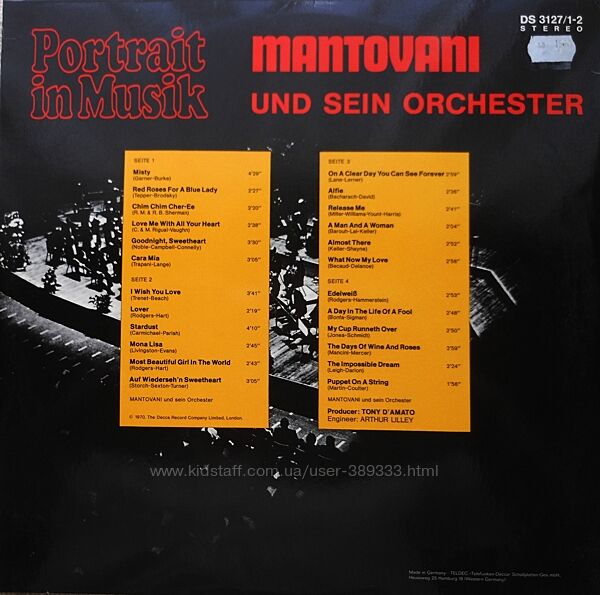 Mantovani Und seinOrchester – Portrait In MusikLabel: Decca – DS 3127/1-2