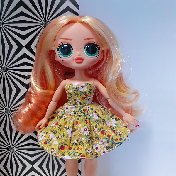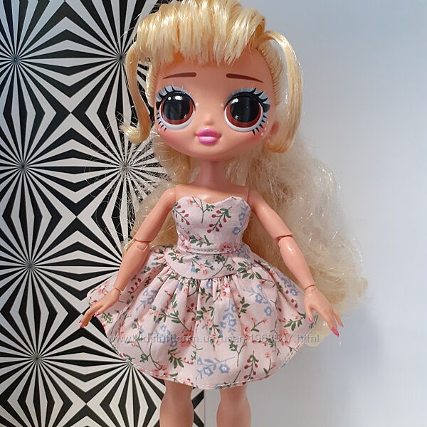Платье из х/б ткани. Верх платья двойной. Сзади застежка на липучке.Продаётся только одежда.