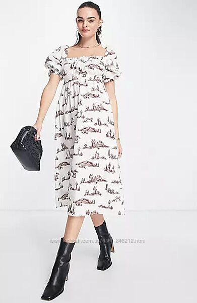 Бавовняна сукня та сумка Mango шоппер в стилі дикого заходу.Квадратний виріз, під грудьми гумка, рукави ліхтарики, ззаду шнурівка.