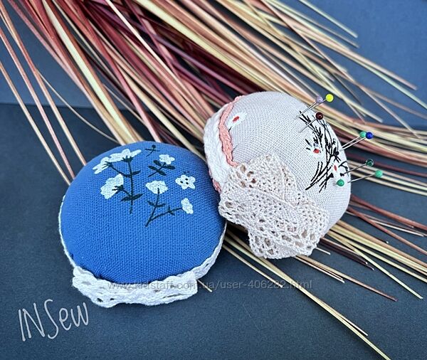 Голківниця (булавочниця) -для безпечного зберігання голочок, булавок та шпильок безпосередньо у процесі роботи 🪡🧷 В наявності настільний варіант, без резиночки Тканина - льон Оздоблення - натуральне мереживо Наповнювач - холлофайбер Діаметр 7-7,5 см Висота бежевої 4,5 см