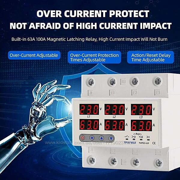Подробное описание: Трьохфазний пристрій захисту від заниженої високої напруги 100А
