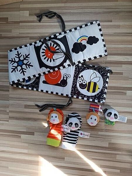 Контрастный подарочный набор с рождения 0+ состоит из:-браслетиков из носочков с погремушками (можно выбрать вид, есть много разных)