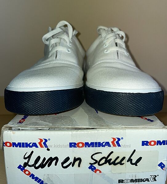Белые кеды Romika (US8.5). Знаменитый немецкий бренд, звёздный час которого пришёлся на середину 80-х, вновь напомнил о себе. Красивые кеды с "каучуковой" подошвой, верхом из натуральных материалов, будут прекрасным дополнением к летнему гардеробу. Наш размер - 41.5. Абсолютно новая пара, коробка слегка повреждена. Оригинал.Возможна доставка по Украине (Новая Почта, Укрпочта) - форма оплаты по договоренности.