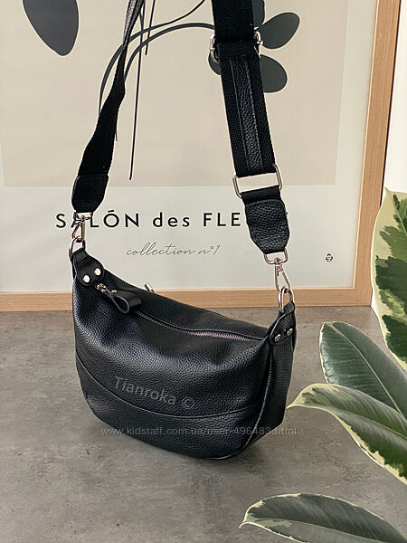 Шкіряна сумка кросбоді-бананка на широкому ремінці, зроблено в Італії 🇮🇹