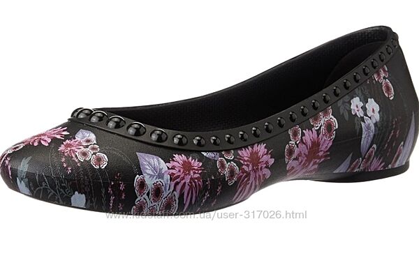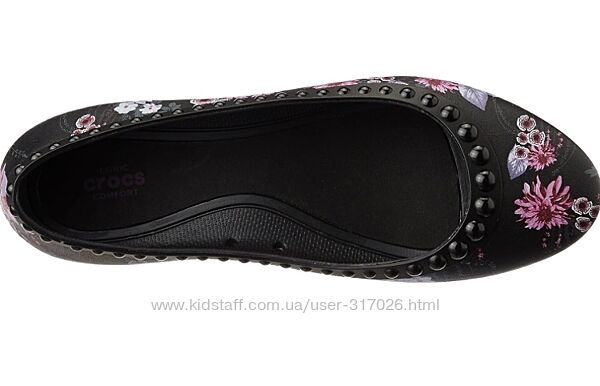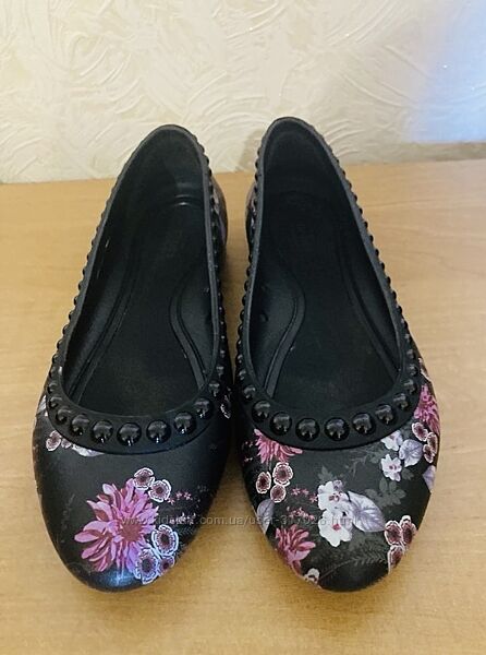 Crocs Lina Luxe Black Purple Floral Studded Waterproof Slip-on Ballet Flats Розмір W7 (37) Чорно-фіолетові водонепроникні балетки Crocs Lina Luxe із квітковими принтом та шипами. Матеріал Крослайт. Всередині мʼякий приємний матеріал. Стан відмінний, без дефектів.