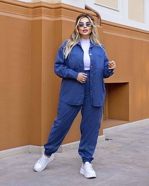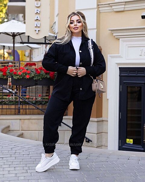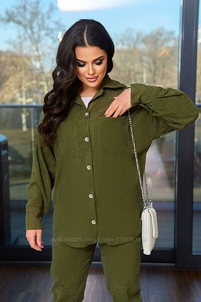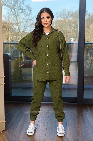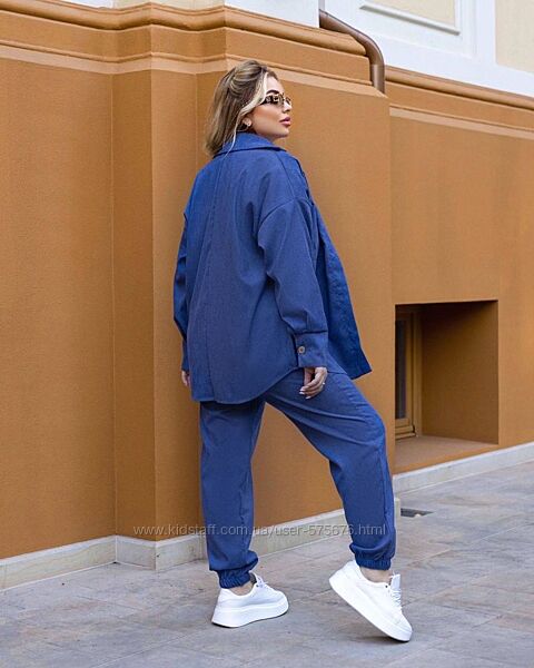 Штани на резинці, повна посадка, сорочка на гудзиках (можна носити під майку в розтегнутому варіанті)