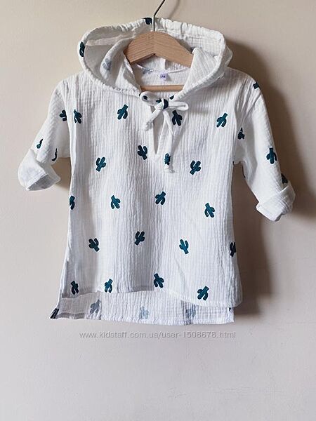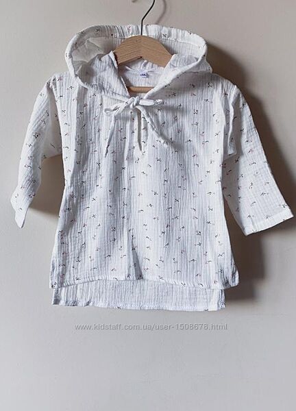 Туніка пляжна муслін Відмінний варіант для спекотного літнього відпочинку. Муслін чудово захистить шкіру Вашої дитини від сонячних променів і в той же час шкіра буде дихати. Тунічка легка, добре пропускає повітря, швидко вбирає вологу і швидко сохне. Розмір: 6-9 міс. ( 74 зріст) Оплата: на карту, післяплатою, безпечна покупка. Доставка: укрпошта, нова пошта, Meest В наявності є і інші забарвлення, пишіть і я Вам вишлю фото.