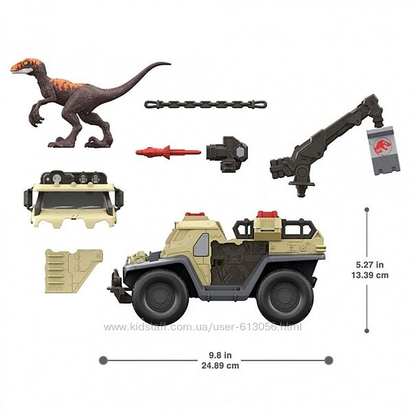 Приготовьтесь к острым ощущениям и приключениям с грузовиком в стиле Мира Юрского периода. Этот внедорожник с катящимися колесами создан для того, чтобы ловить динозавров на свободе. Автомобиль оснащен бластером и дротиком с транквилизатором, поворотным краном для подъема динозавров и плоской платформой для транспортировки. Эластичные цепи на спине фиксируют пойманное животное. Но Динозавры могут дать отпор и уничтожить части машины.Сканируйте скрытый код отслеживания в бесплатном приложении Jurassic World Facts с помощью совместимого смарт-устройства для разблокировки игр и впечатлений с дополненной реальностью.
