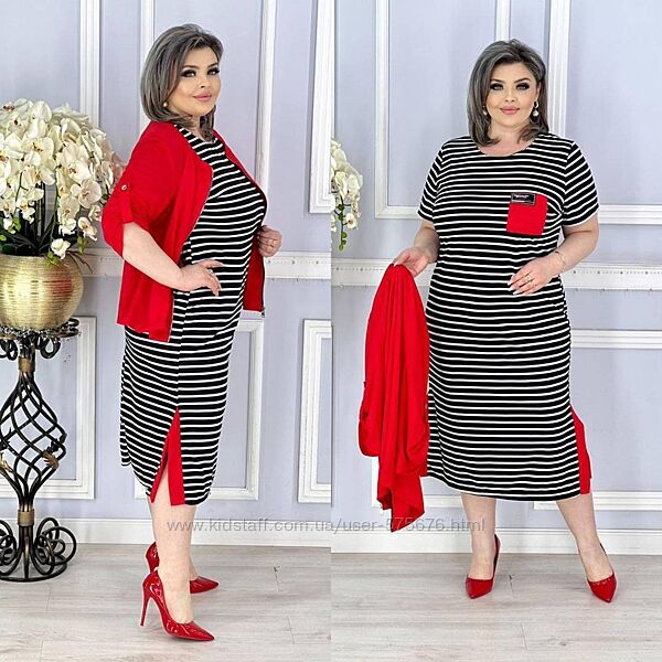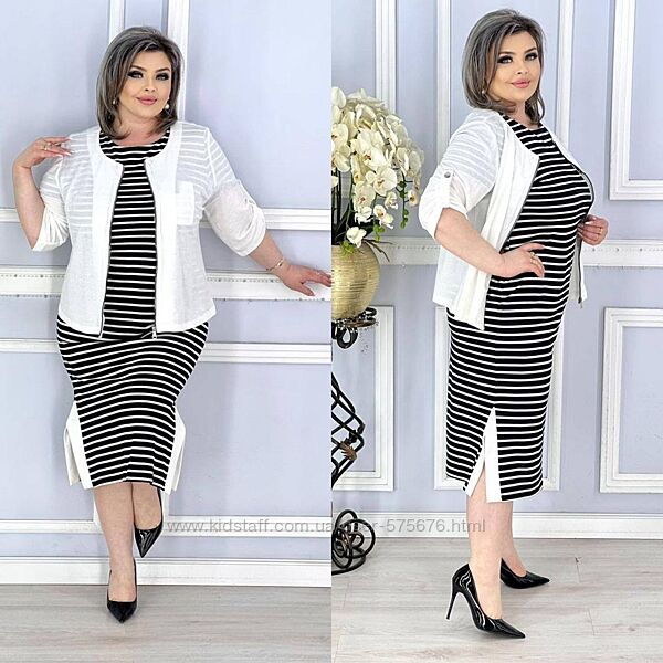 Комплект двійка: сукня+жакет, супер якості, натуральна, дихаюча, приємна до тіла тканина. Сукня має рукав, дуже гарна розтяжність. Можна носити окремо 2 речі.