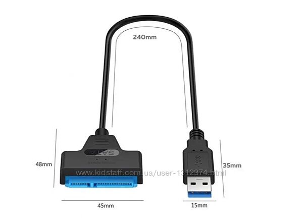 Кабель для подключения Жёсткого диска 2.5 или SSD для ПК через USB 3.0Назначение - для ноутбука, ПК