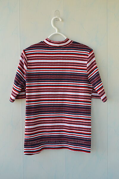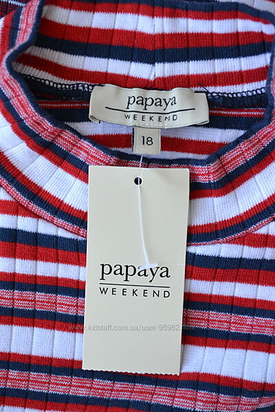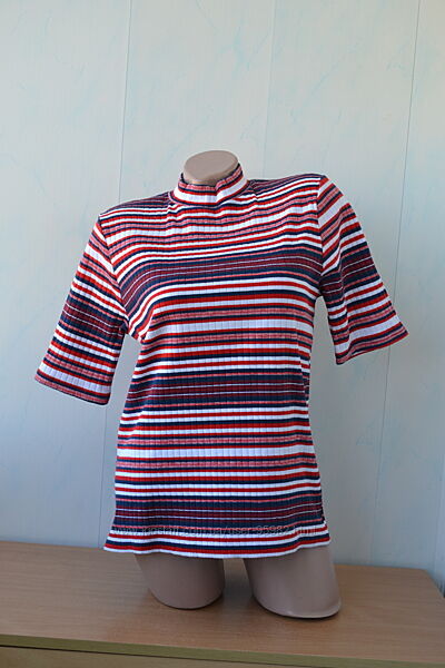 Футболка, американка в смужку, у рубчик Papaya, зверніть увагу, реальний колір і видно саму тканину на 1-2 фото. Чудовий бавовняний трикотаж,той випадок, коли річ треба брати за розміром, а не за вимірами. Тканина