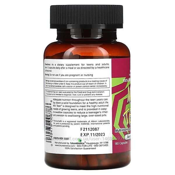 Подробное описание: Futurebiotics MV для підлітків 180 капсул вітаміни комплекс полівітаміни та