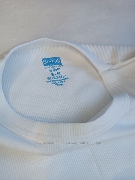 Кроп -топ в розмірі S-M від фірми Berrak ( Туреччина) в білому кольорі.Заміри в нерозтягнутому стані. Тканина дуже гарно тягнеться.