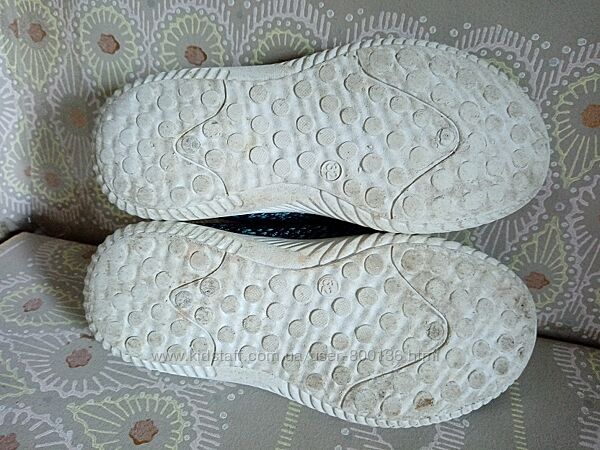 Б/В. Літні мокасини у "сіточку" на розмір 32-32. Довжина по устілці 18,5 см. Застібається на липучку, резинок не має. Зверху пошкоджень не має. Ньюанс: на устілках є невеличкі вздуття поверхневого слоя ( дивіться фото).Доставка: Укр пошта, Нова пошта. Доставка за рахунок отримувача. Оплата на карту банка.