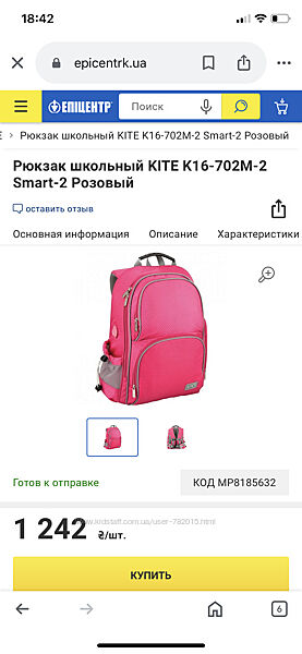 Подробное описание: Рюкзак школьный KITE K16-702М-2 Smart-2фуксия