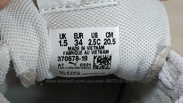 Дитячі кросівки Puma, оригінал.Розмір вказаний UK 1.5 / 34 / 20.5, довжина устілки 21.5 см, ширина устілки 7.7 см.