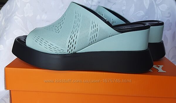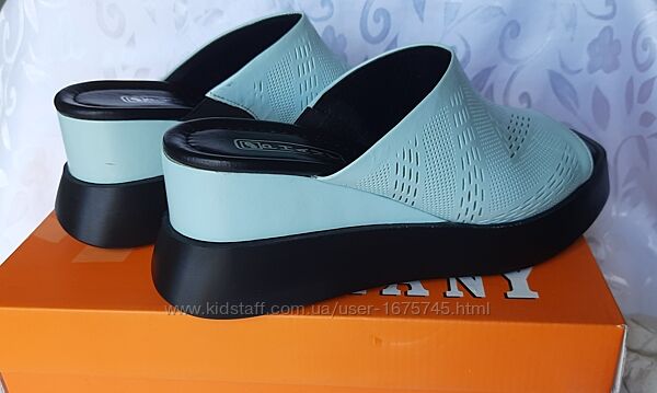 Очень красивые шлепанцы на лето нежно-бирюзового цвета из натуральной кожи.Phany Турция